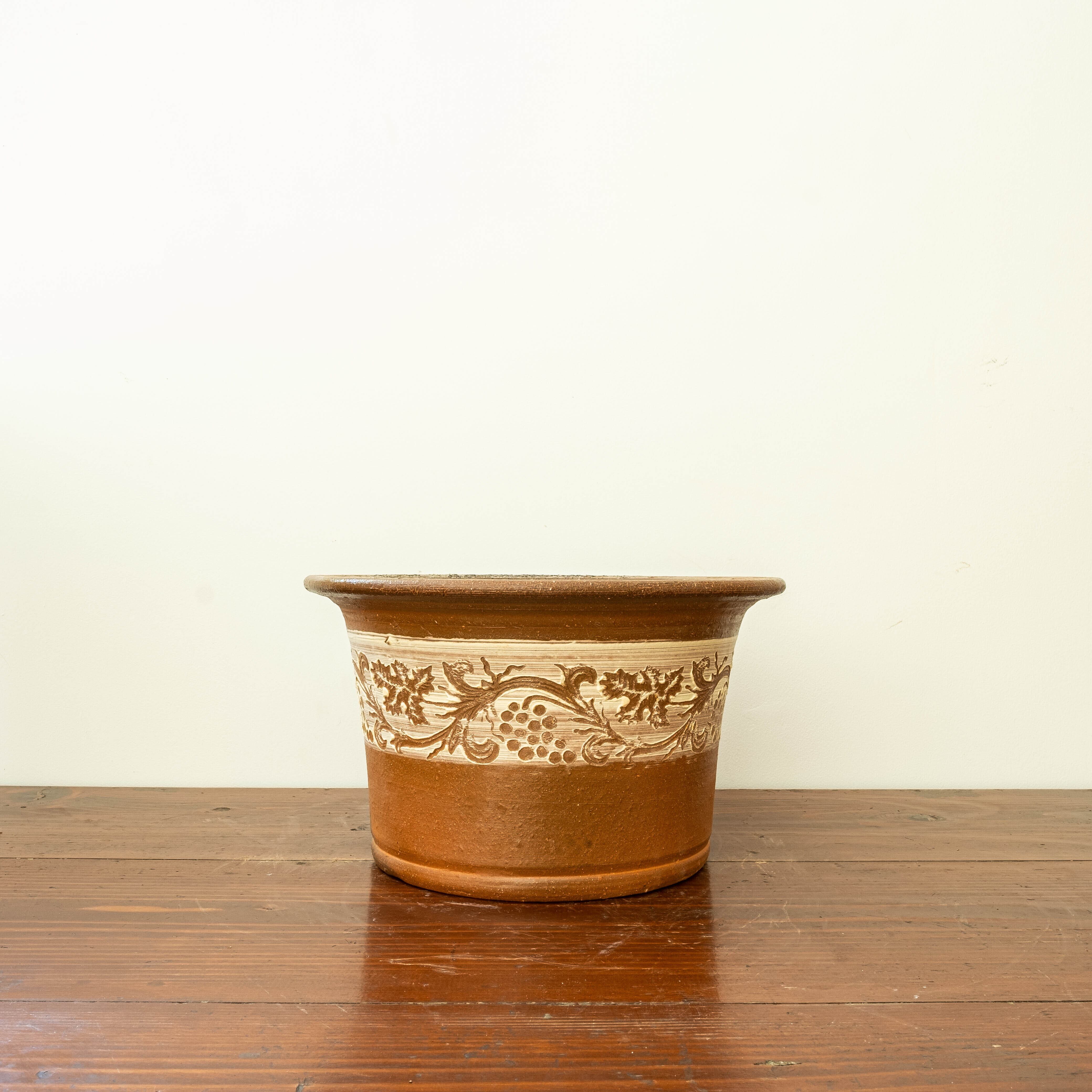 ウィッチフォードポタリーでは、シェークスピア生誕450周年記念ポットとしてつくられたミッドサマーナイトドリームと呼ばれるデザインです。ブドウのルーレットがデコレーションされています。