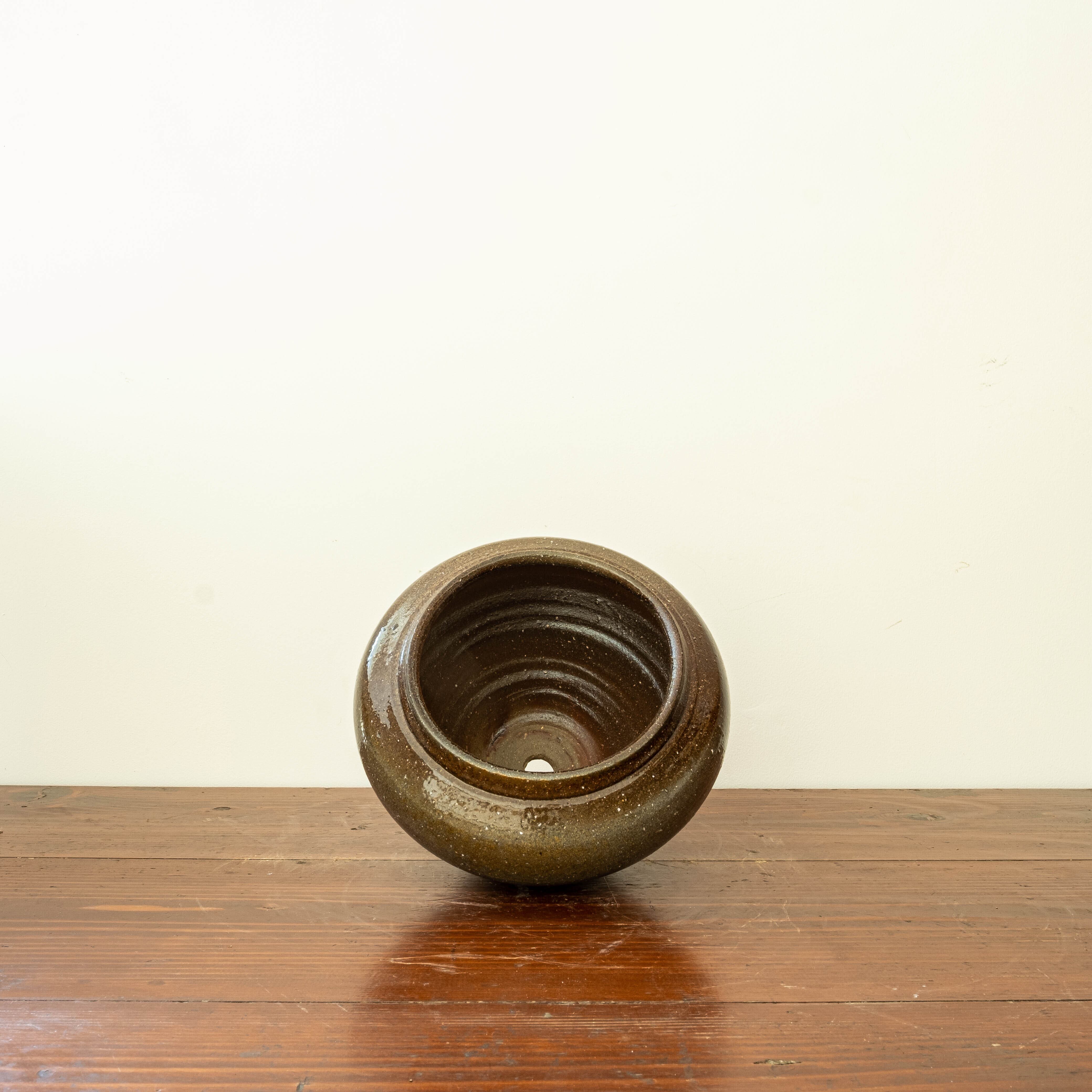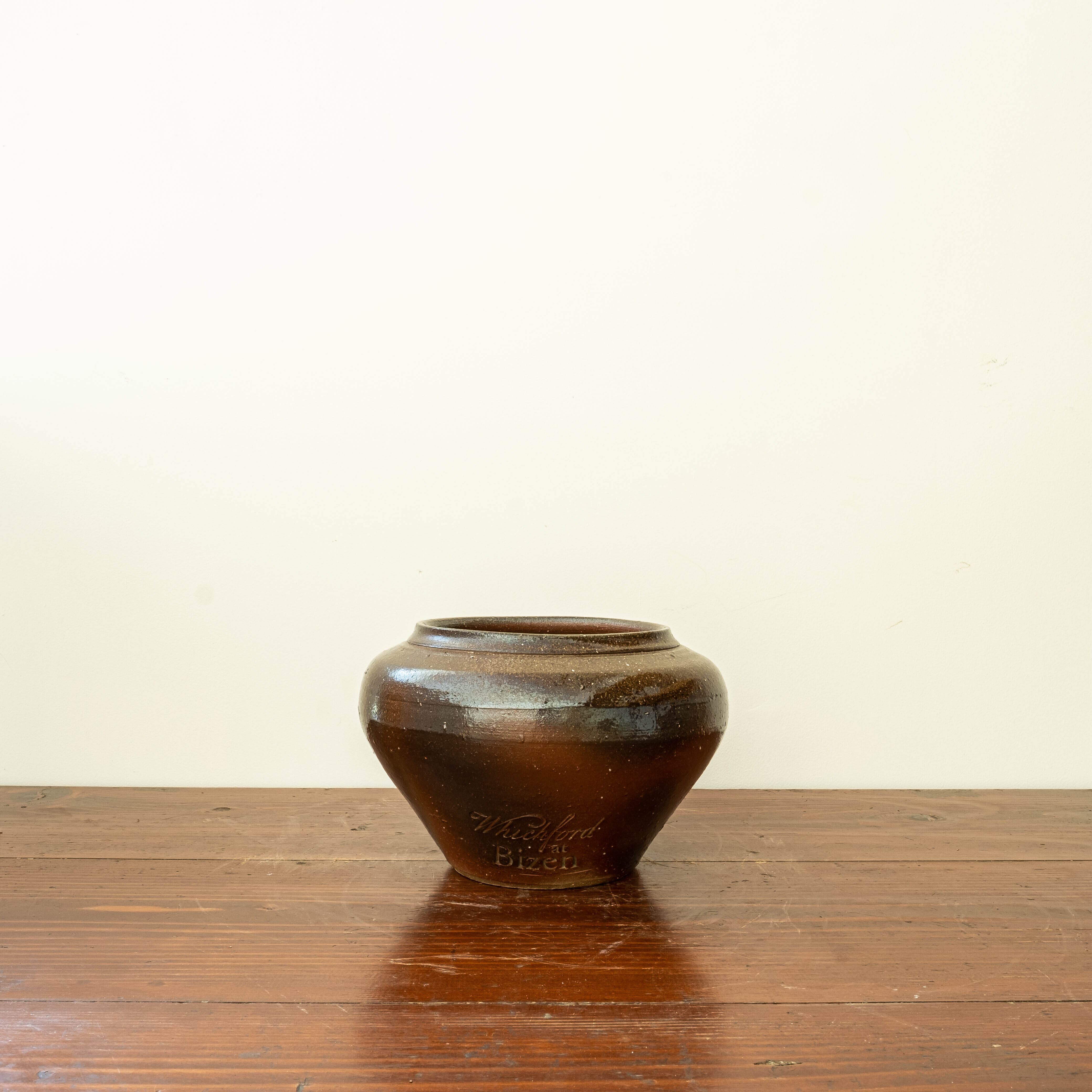 工房長のJimが備前で制作したウィッチフォードポタリーの商品にはない作品となります。穴窯で焼成され、ツヤのある茶色から神秘的なグレーへのグラデーションと非常に綺麗に焼けいます。